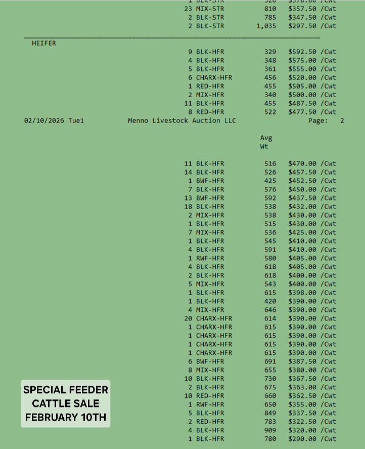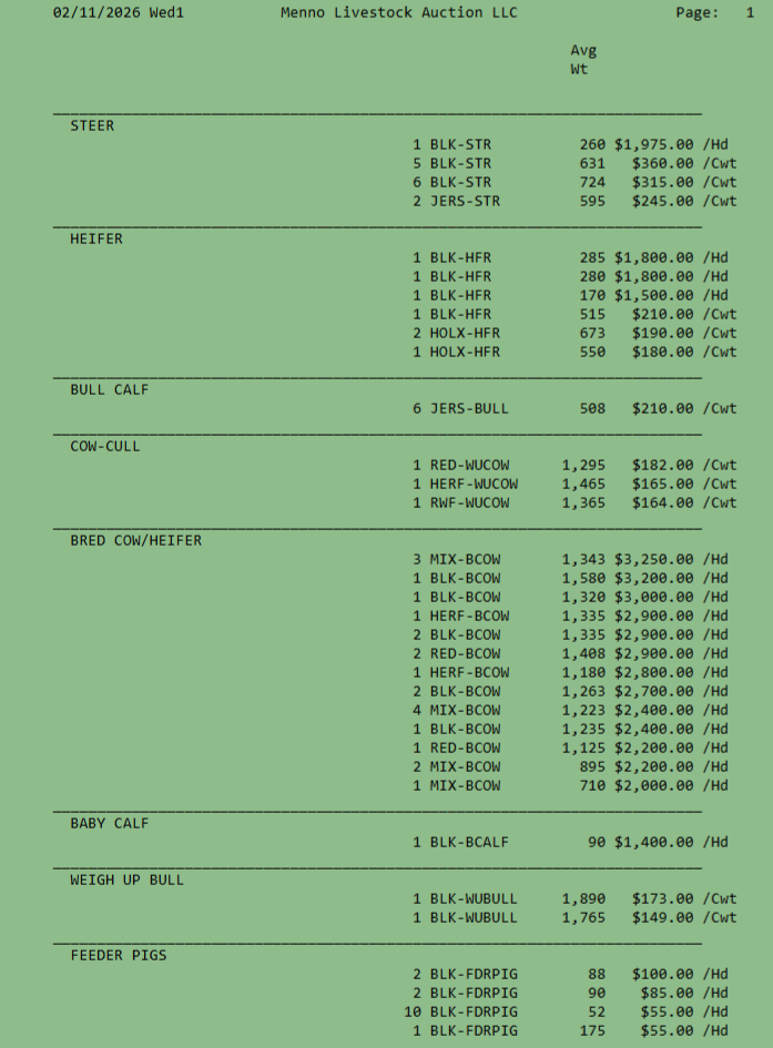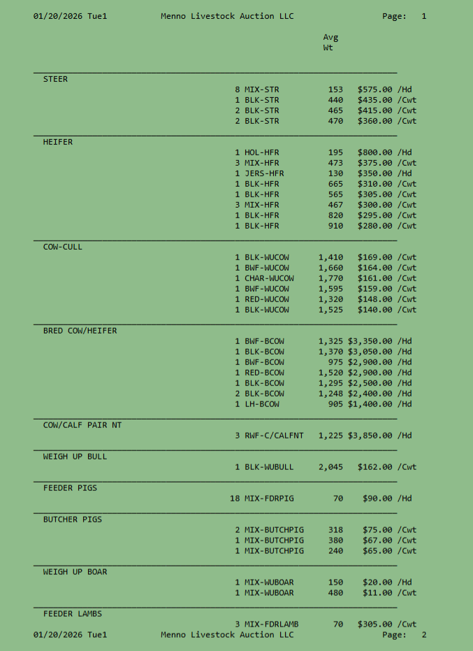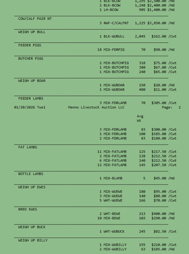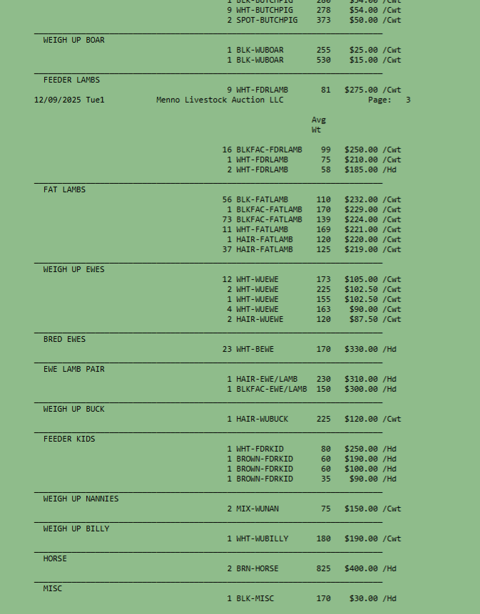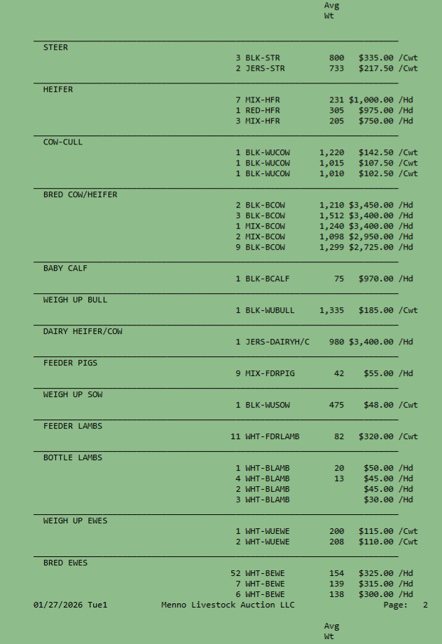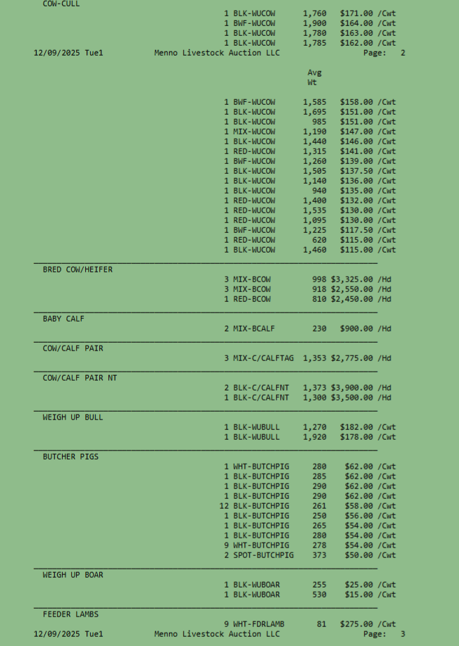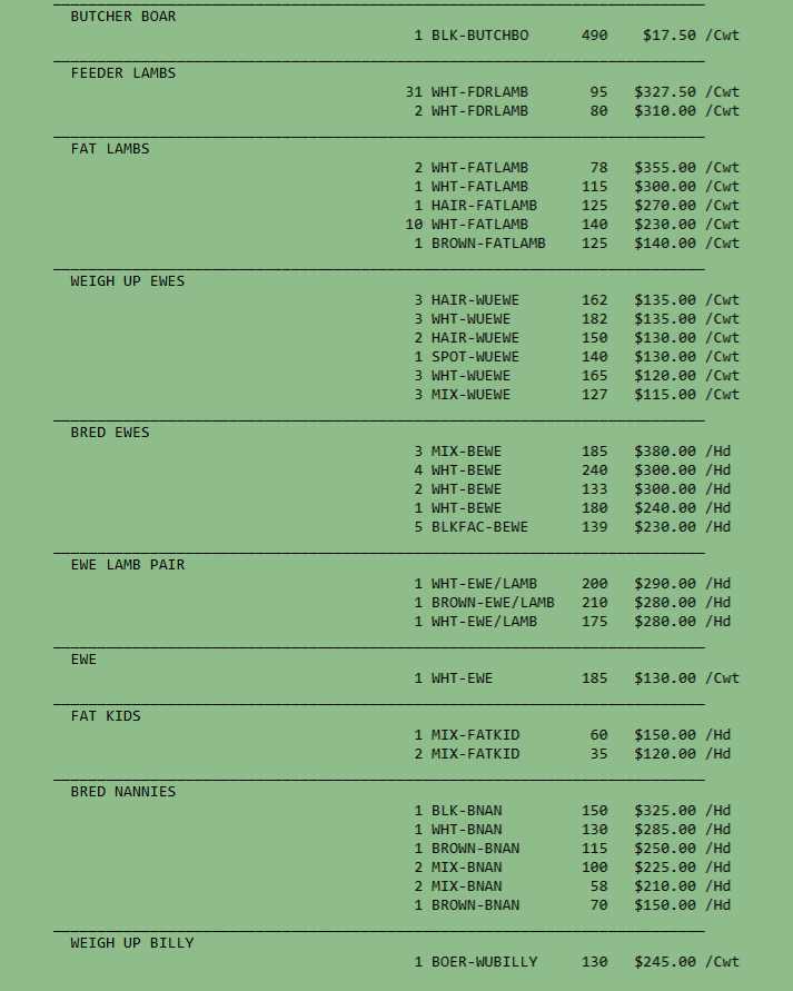 SALE SCHEDULE: 12:00 START TIME Sows/Boars/Butcher Hogs, Feeder Pigs, Followed by Sheep, Goats, Equine, Hay, Misc, Bred Cows/Cow Calf Pairs, Weigh up Cows, Bulls, Baby Calves, Feeder Cattle