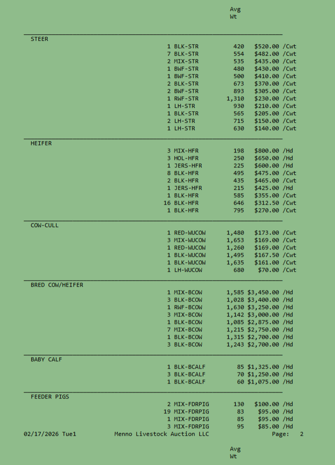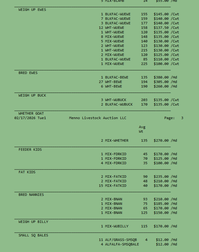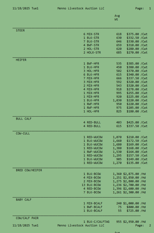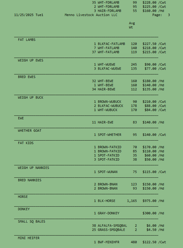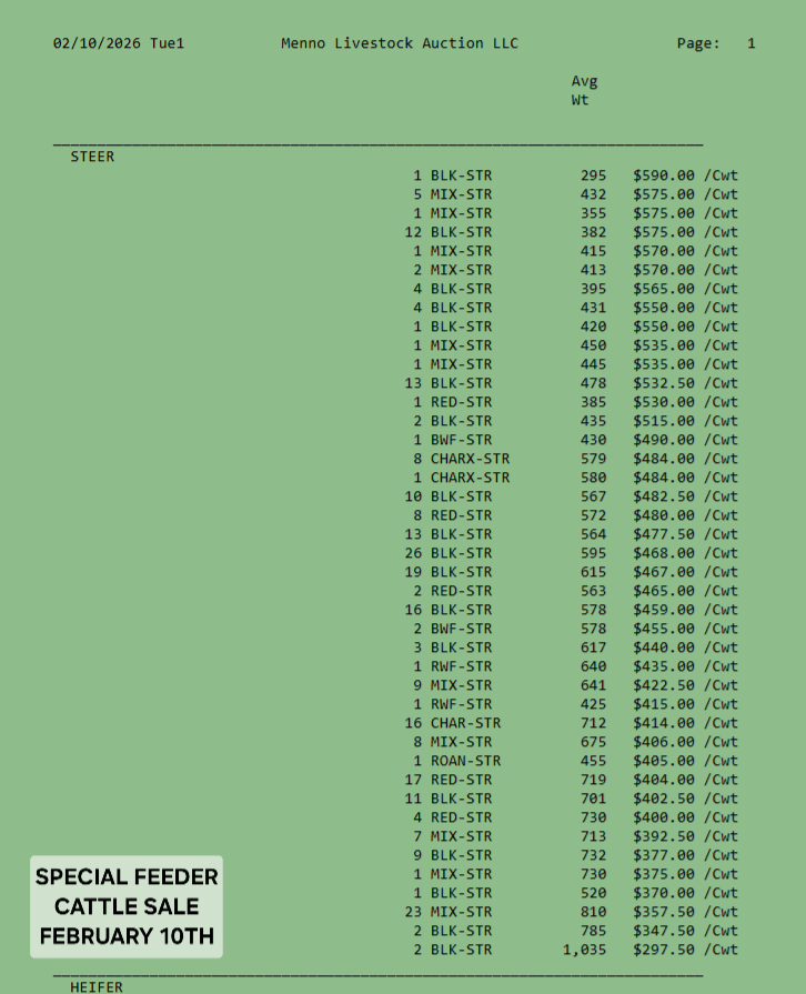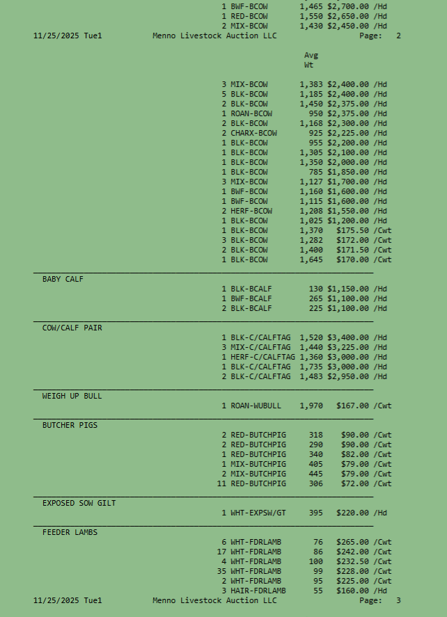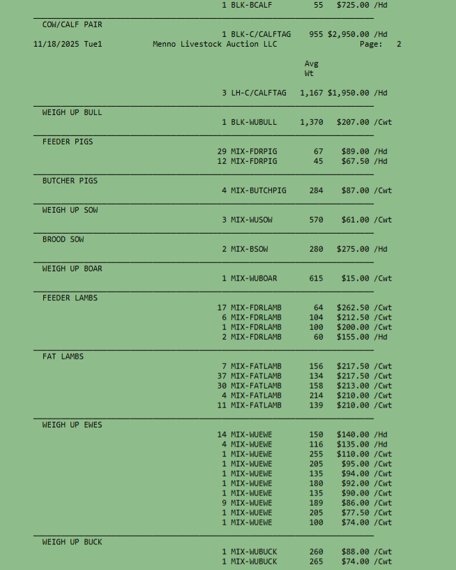 SALE SCHEDULE: 12:00 START TIME Sows/Boars/Butcher Hogs, Feeder Pigs, Followed by Sheep, Goats, Equine, Hay, Misc, Bred Cows/Cow Calf Pairs, Weigh up Cows, Bulls, Baby Calves, Feeder Cattle