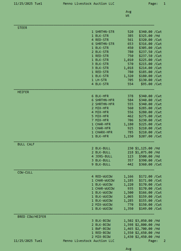 menno livestock auction